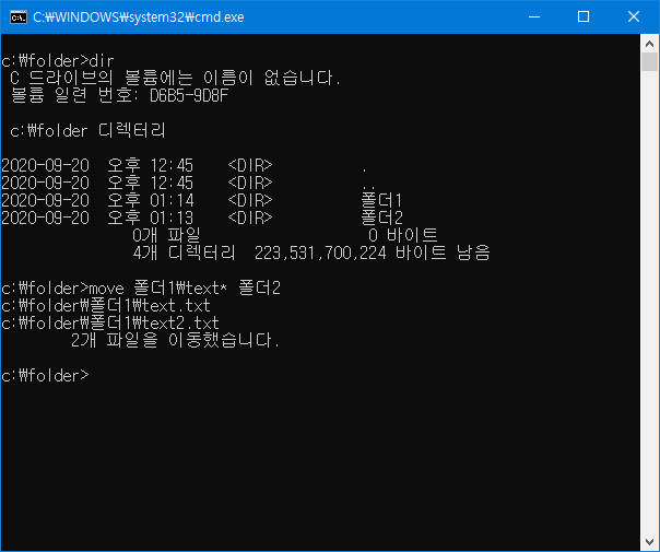 명령 프롬프트에서 move 명령어를 이용해서 파일을 옮길 수 있다.