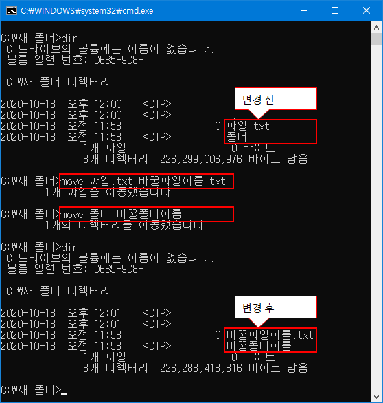 move [경로\폴더 이름] [경로\바꿀 폴더 이름]