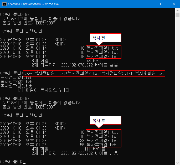 copy [파일 1]+[파일 2]+[파일 N] [합친 후 파일 이름]