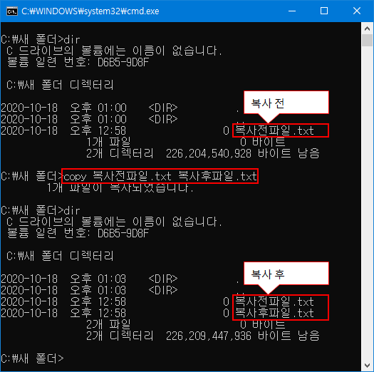 copy [디렉터리\복사 전 파일 이름] [디렉터리\]