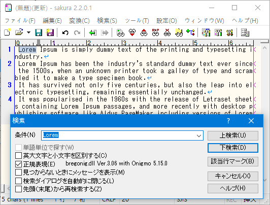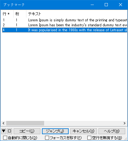 検索 다이얼로그에서 該当行マーク 클릭