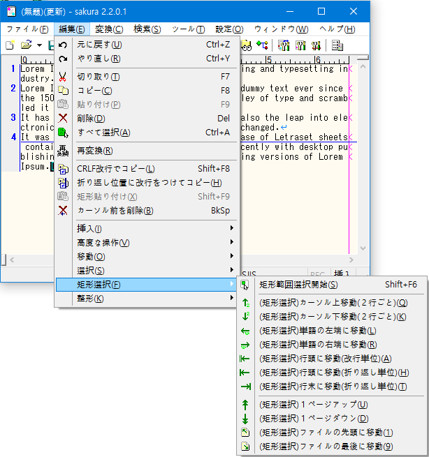키보드 방향키로 커서를 이동할 때, 직사각형 범위 선택이 유지된다.