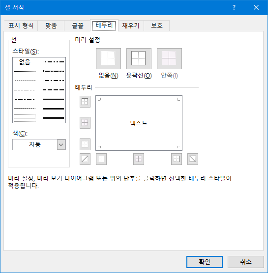 셀 테두리를 설정할 때 Ctrl + Shift + 7 단축키를 사용하면 빠르게 테두리를 그릴 수 있다.
