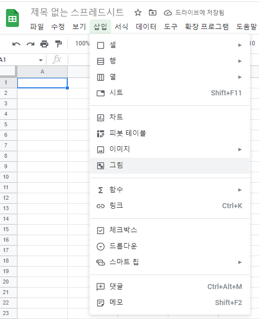 (1) 스프레드 시트 메뉴에서 [ 삽입 > 그림 ] 을 클릭한다.