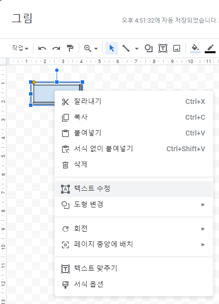 도형을 오른쪽 클릭한 뒤, 텍스트 수정을 클릭한다.