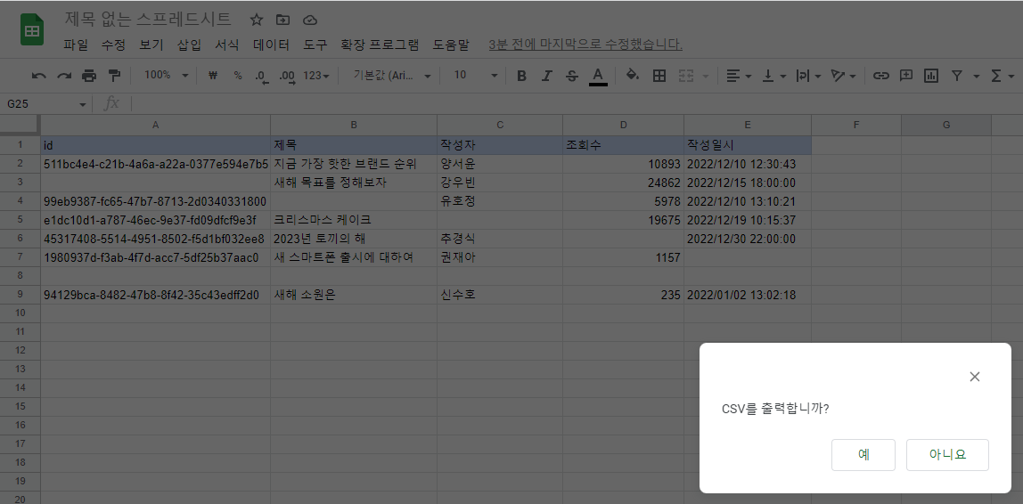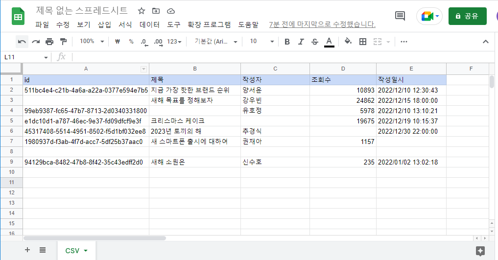 - 시트를 CSV형식으로 변환하기 (현재 열람중)